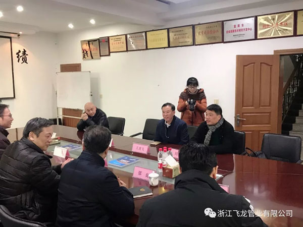 2019年1月2日下午,杭州市政協(xié)副主席胡偉在富陽(yáng)區(qū)政協(xié)副主席邵良等陪同下,來(lái)到浙江飛龍管業(yè)有限公司調(diào)研。